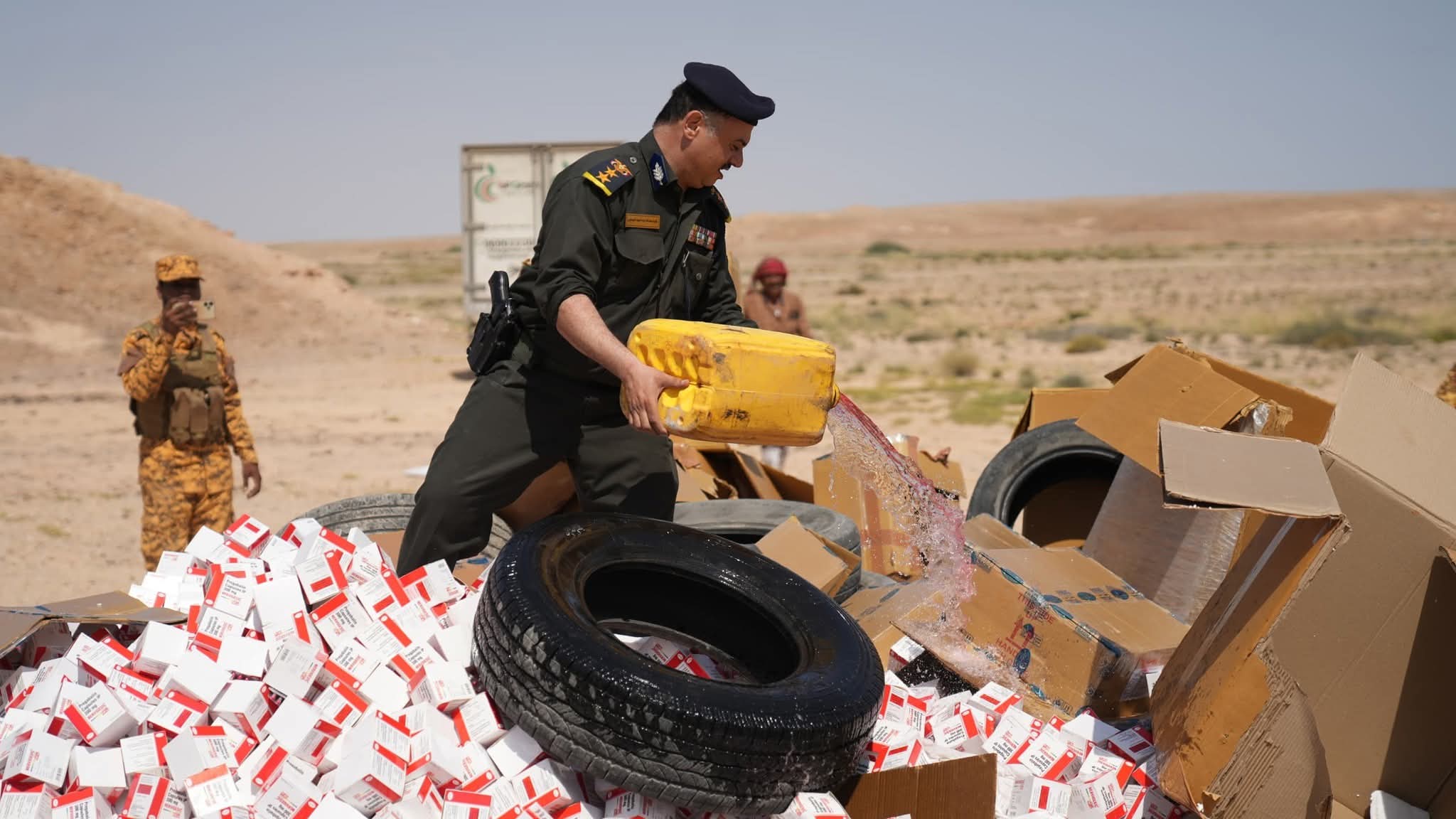 إتلاف كميات من الأدوية المهربة والممنوعات في المهرة