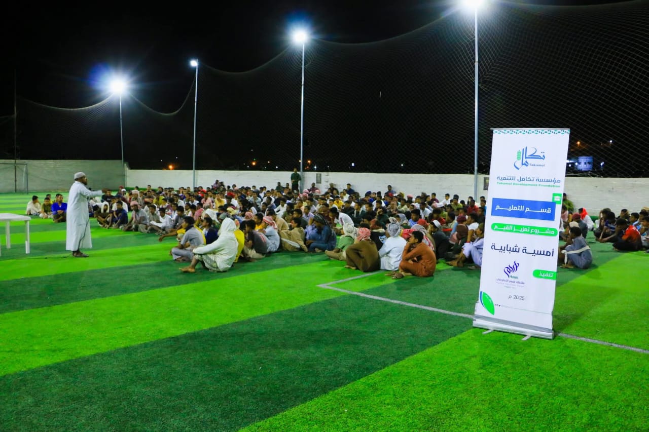 نظّمت مؤسسة تكامل للتنمية بالتنسيق مع ملتقى همم التطوعي أمسية شبابية توعوية مساء الاثنين 10 نوفمبر 2025م، في